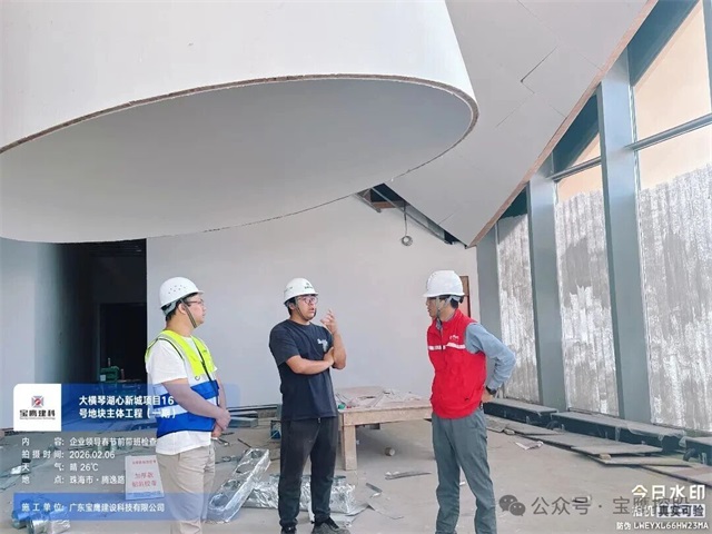 ▲宝鹰股份纪委书记王宇、宝鹰建科总裁助理刘昊带班检查横琴口岸及综合交通枢纽开发工程D2区公寓室内装修工程项目